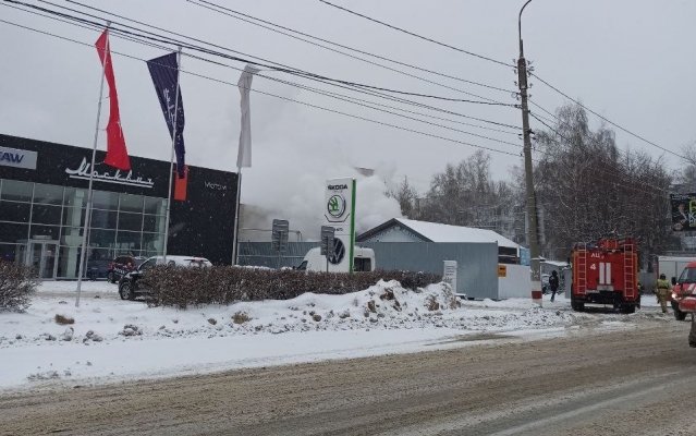 Появились кадры сильного пожара на улице Октябрьская. В этом районе располагается автосалон «Мотом».