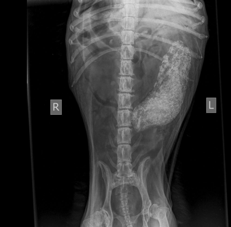 Операция прошла успешно. Инородным телом оказалось большое скопление травы, мелкие камни и целлофановый пакет – собака съела всё, что можно и что нельзя.