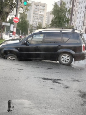 Сегодня, 6 августа, на улице Кирова автомобиль SsangYong провалился в яму.