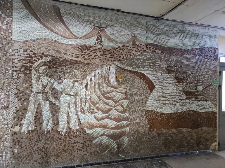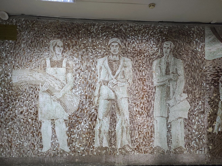 А самая неизвестная работа скульптора, по словам Илюшина, находится на северной окраине Ульяновска. В здании, по адресу улица Юности 5, где сейчас располагаются Симбирская ветеринарная компания, зоомагазин и аптека до сих пор можно увидеть мозаичное панно Церетели «Сельские строители».