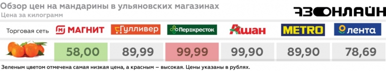 Чтобы выяснить, где самый новогодний цитрусовый фрукт дешевле, корреспондент 73 online посетил магазины популярных у горожан торговых сетей. Результат традиционно приводим в виде таблицы.