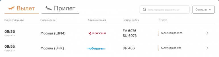 На данный момент задержаны несколько авиарейсов в Москву и обратно.