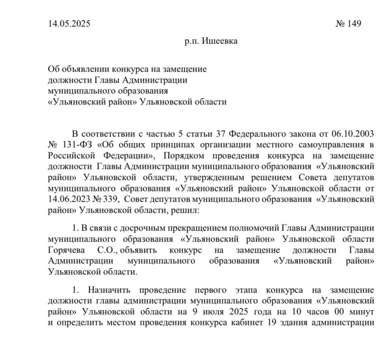 Документы можно подать до 5 июня, сам конкурс намечен на 9 июля.