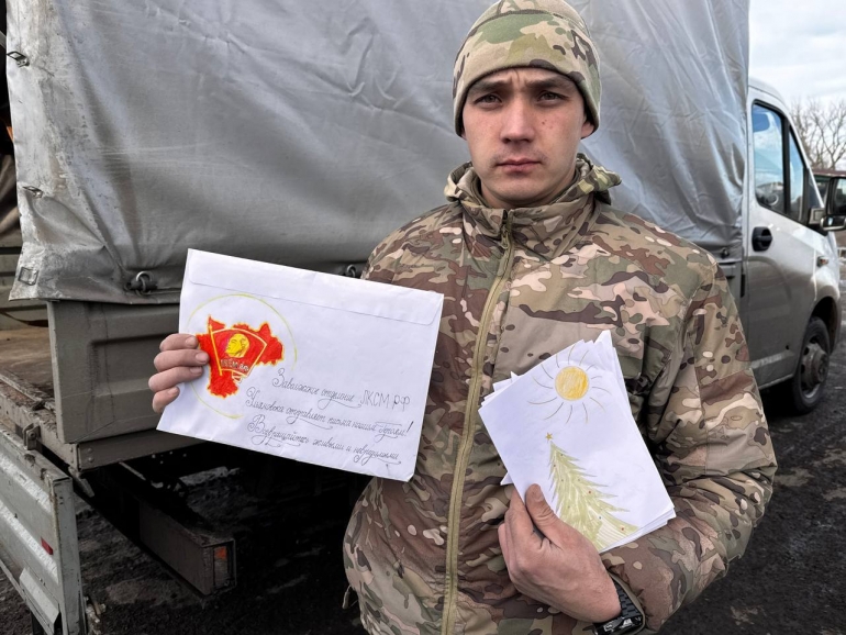 Отдельным направлением стала поддержка участников СВО. В рамках акции «Письмо солдату» комсомольцы, студенты и активисты — подготовили сотни писем и рисунков, которые были переданы на передовую.