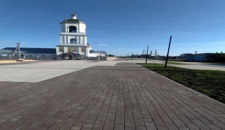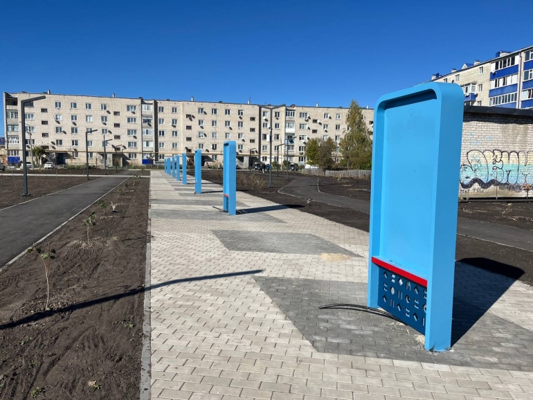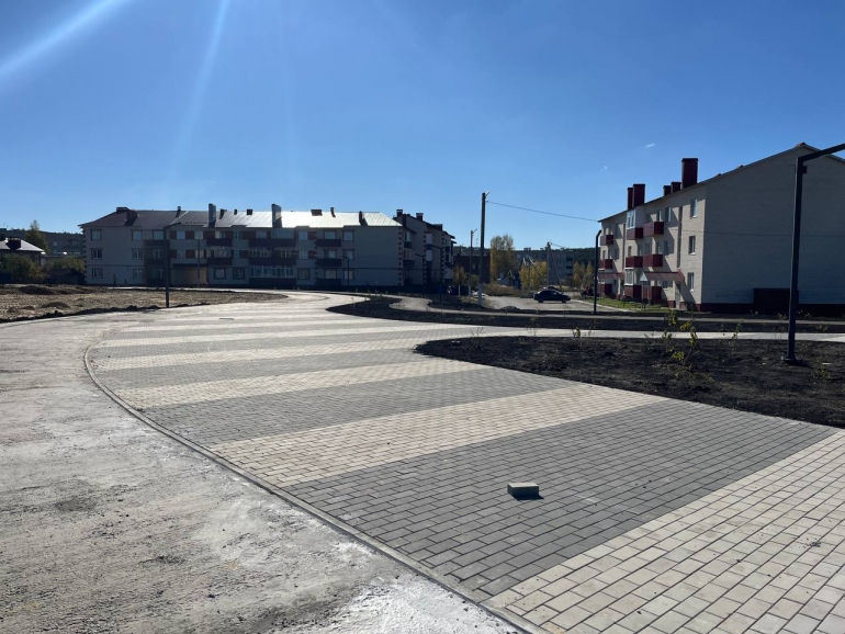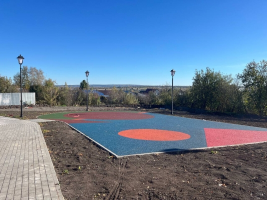 На объекте уже подготовлено бетонное основание для детской площадки, уложен асфальт. В настоящее время укладывают тротуарную плитку, делают резиновое покрытие на площадках, монтируют светильники, устанавливают скамейки и арт-объекты, проводят озеленение.