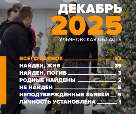 За декабрь 2025 года в отряд поступили 53 заявки на поиски 55 человек по Ульяновской области – 36 мужчин и 19 женщин.
