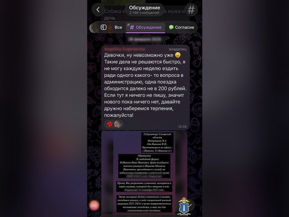 Для того, чтобы придать значимость своим действиям и внушить доверие, злоумышленница собирала заявления от родственников на имя главы администрации с ходатайством об установке памятника, а также приезжала в населенный пункт, где хотели установить мемориал.