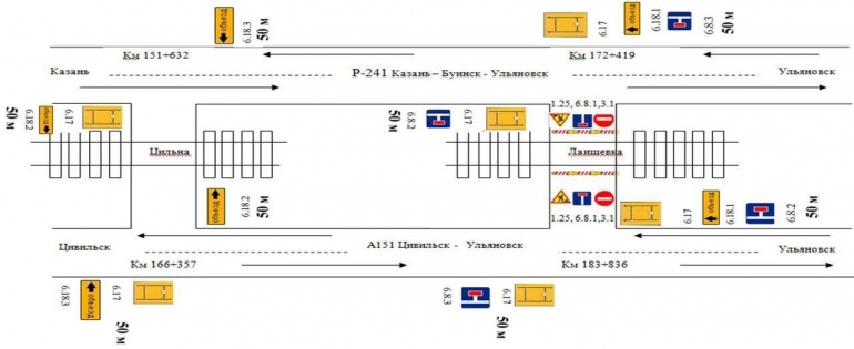 Схема объезда предполагает движение автотранспортных средств через железнодорожный переезд 158 км станции Цильна.