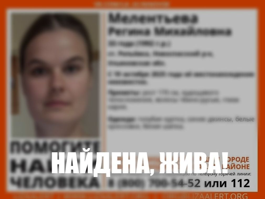 Портал 73онлайн писал, что в Новоспасском районе 19 октября пропала 33-летняя жительница станции Репьёвка. Сегодня, 22 октября, стало известно, что она нашлась.