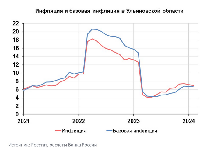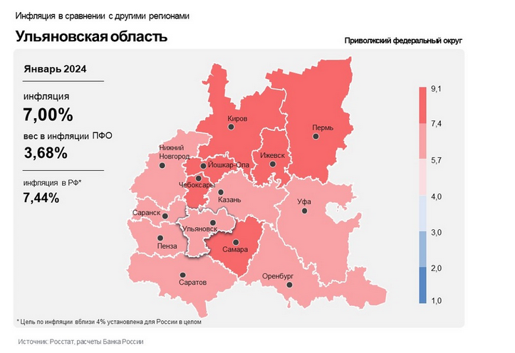 Годовая инфляция в Ульяновской области в январе этого года замедлилась до 7% после 7,46% месяцем ранее, сообщает Банк России.