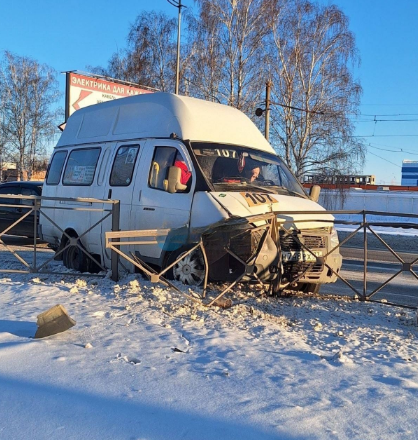 О происшествии очевидцы сообщают в социальных сетях. Водитель маршрутки пытался уйти от столкновения с легковым автомобилем и врезался в забор.