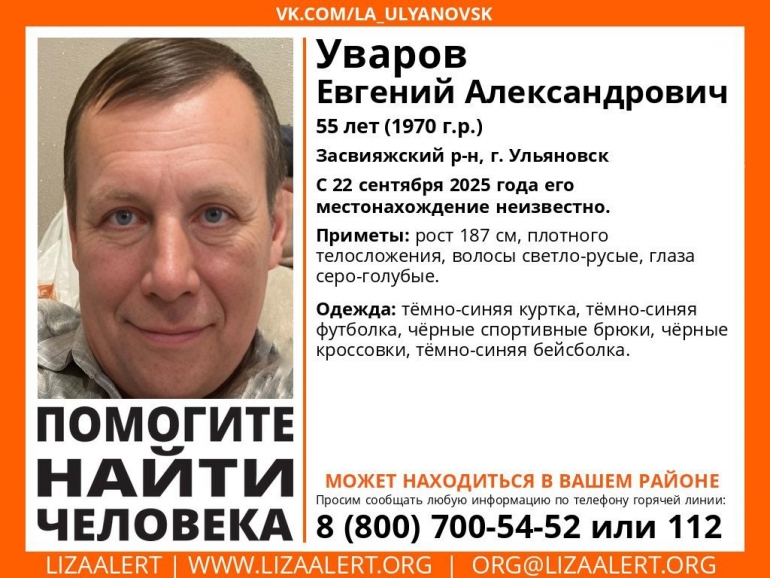 Поисковый отряд «Лиза Алерт» распространил ориентировку о пропаже Евгения Уварова.