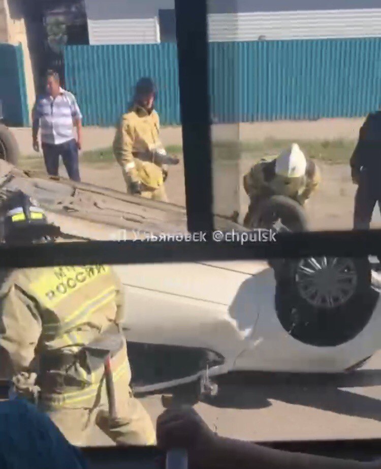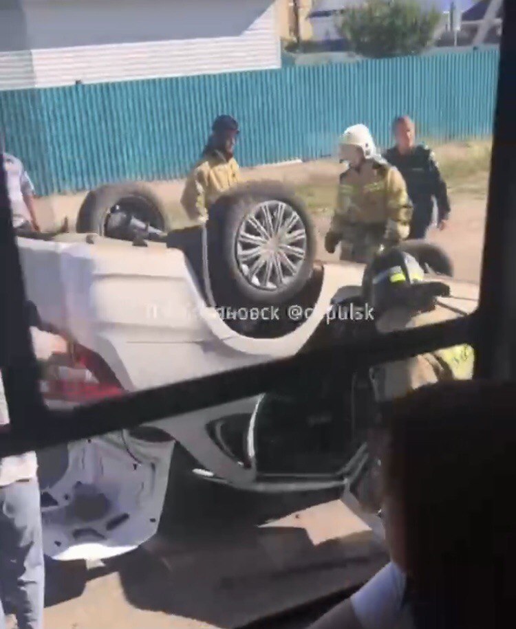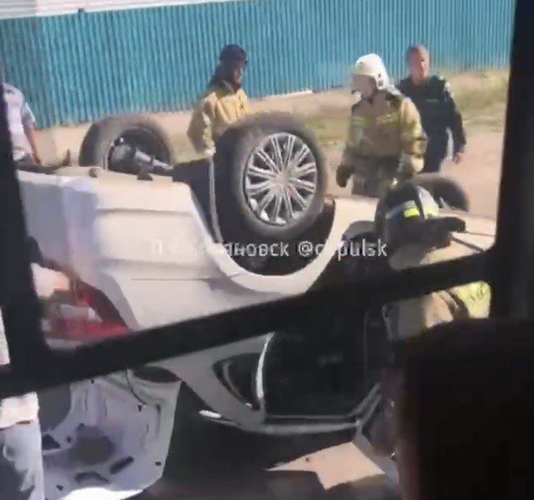 В социальных сетях появилось видео последствий ДТП - лековой автомобиль перевернулся на улице Московской на Верхней террасе.