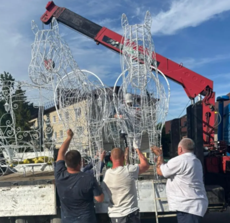 По информации ведомства, световые фигуры установили недавно, 30 мая, – центр города украсили изображениям лошадей и кареты.