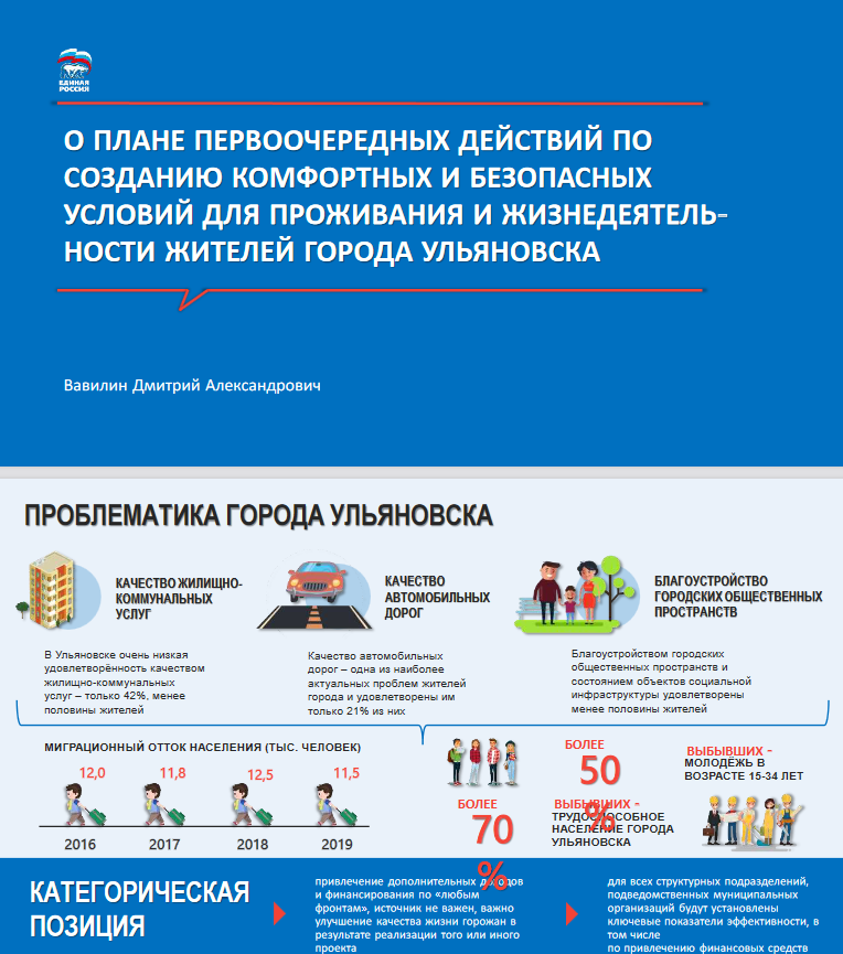 Глава Ульяновска Дмитрий Вавилин составил план развития города, где рассказал о первоочередных действиях по созданию комфортных и безопасных условий проживания.