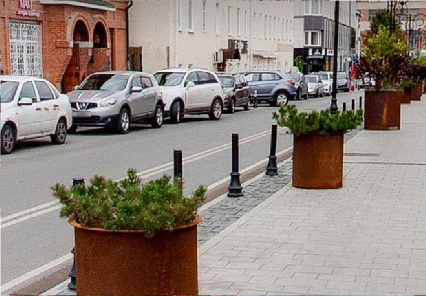 - Вазоны с кустарниками выполнены в стиле «кортеновская сталь», главная особенность которого - текстурированная поверхность с оттенками ржавчины, - пояснили в Горзеленхозе.