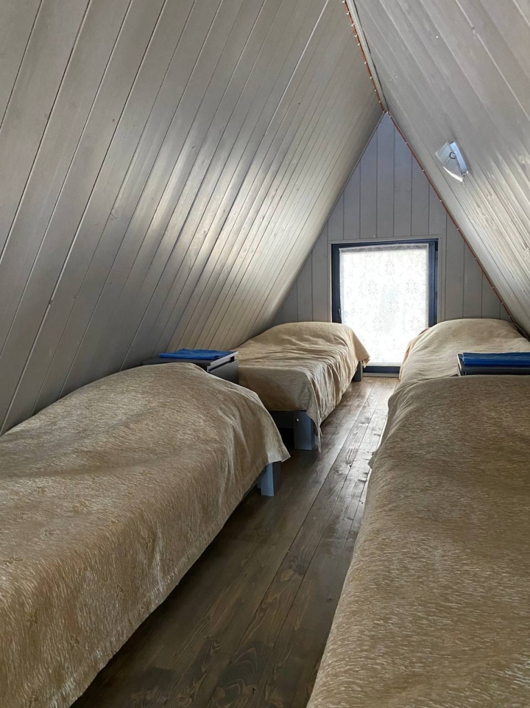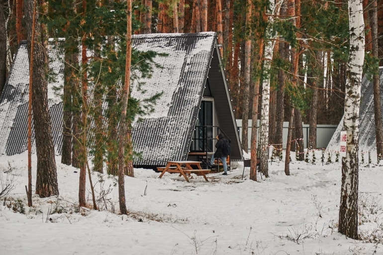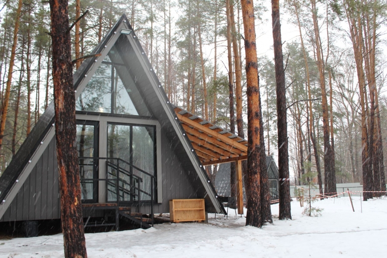 На территории туристической деревни расположено 10 домиков — четыре классических коттеджа, остальные шесть — двухэтажные домики-шалаши в скандинавском стиле. На втором этаже под самой крышей расставлены односпальные кровати, имеются и тумбочки, также спальные места есть в небольшой комнате за кухней, дополнительно гостей можно разместить на диване в холле. Всего в такой домик поместится до восьми человек.