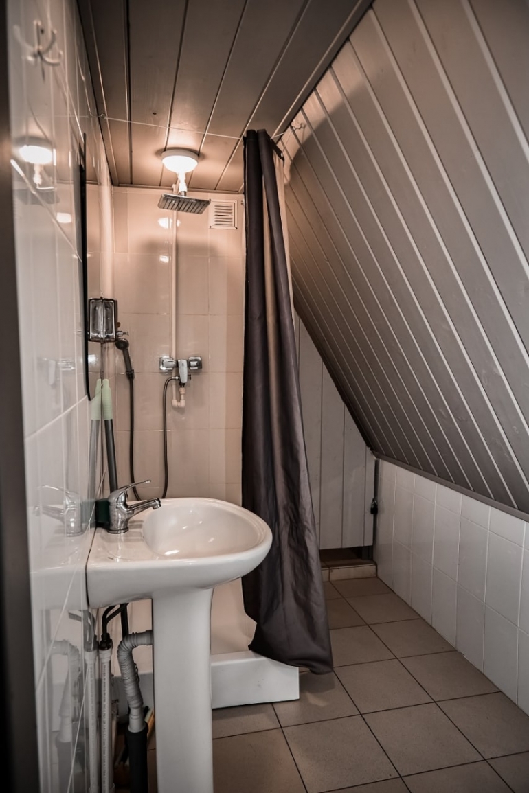 Для компаний побольше (10-12 человек) есть один вместительный классический коттедж. В каждом из домиков оборудована небольшая кухня с микроволновкой, холодильником, раковиной, базовым набором посуды; также есть совмещённая душевая и туалетные комнаты.