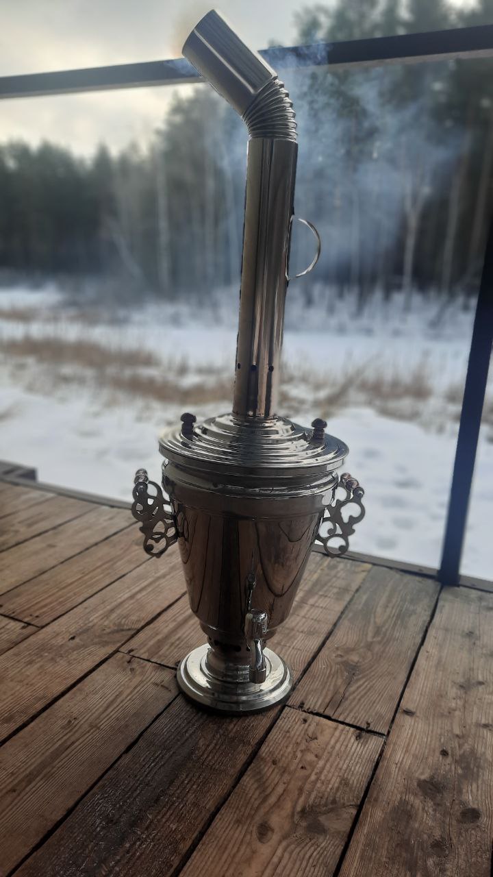 После веселья на свежем воздухе точно захочется погреться. Сделать это можно в бане. Довольно просторное помещение оборудовано всем необходимым. С собой стоит взять халаты и полотенца, простыни предоставляют бесплатно, а за отдельную цену принесут веники, фирменные травяные чаи или даже настоящий самовар, который греет воду от углей.