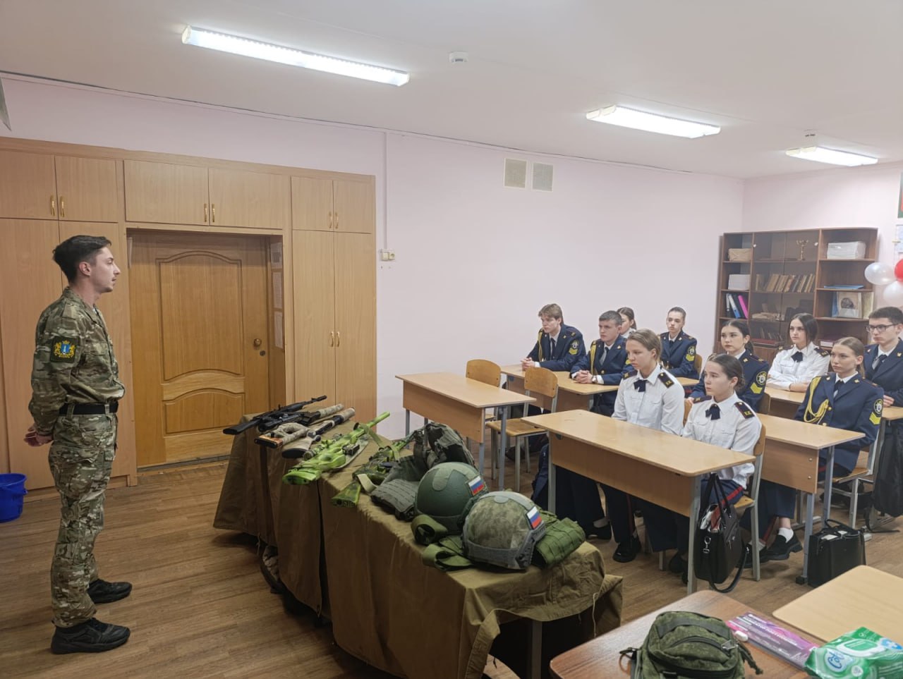 О важности знать правду и сохранять память о героях, жизни которых оборвались в борьбе с неонацизмом, Никита Комраков рассказал кадетам. Также им были продемонстрированы элементы экипировки бойцов.