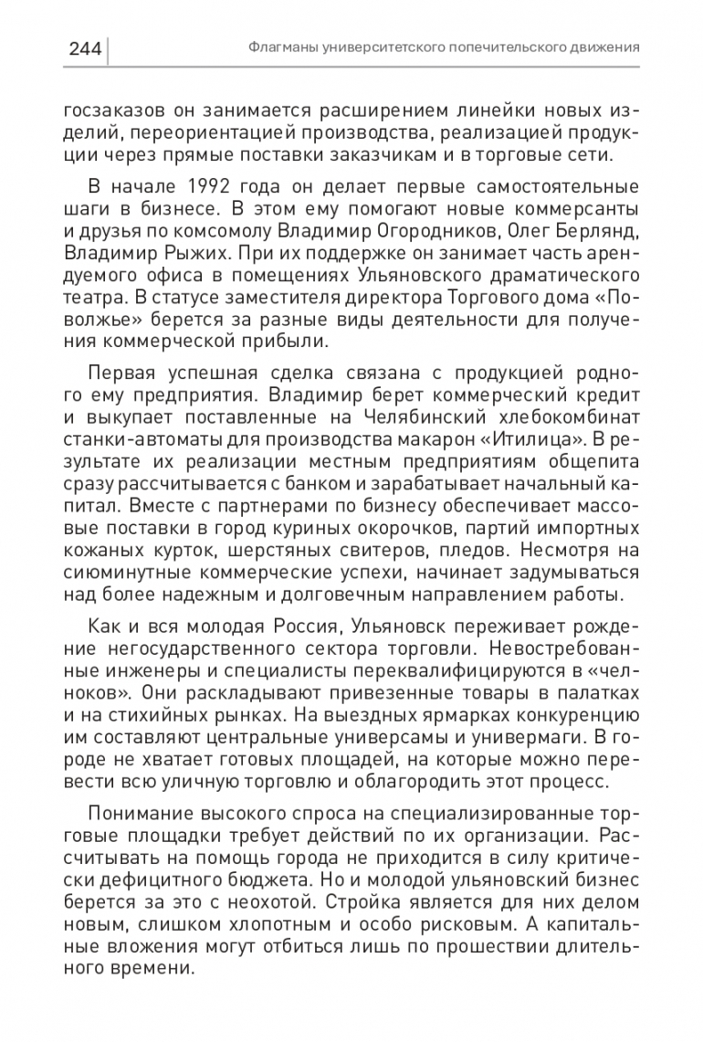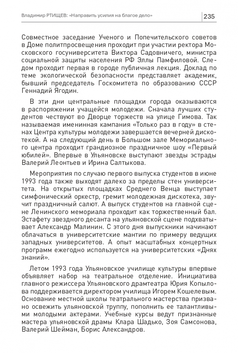 73online.ru продолжает эксклюзивную публикацию глав из новой книги президента УлГУ Юрия Полянскова «Флагманы университетского попечительского движения». Героем сегодняшнего выпуска стал предприниматель Владимир Ртищев, который задал курс на объединение представителей бизнеса в преображении социокультурной жизни.