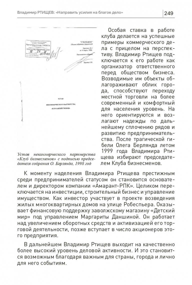 В дальнейшем Владимир Ртищев выходит на качественно более высокий уровень деловой активности. И это становится возможным благодаря важным для страны, города и лично для него событиям.