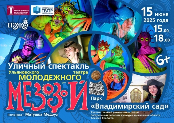 В спектакле «Мезозой» отразилась самобытность Ульяновска и его история. Зрители станут свидетелями уникальной истории, разворачивающейся прямо на улицах города, в которой прошлое встретится с настоящим. Показ дополнит музыка и зрелищные эффекты.В центре сюжета — профессор палеонтологического института и его студенты, преданные своему делу и любящие Ульяновск.