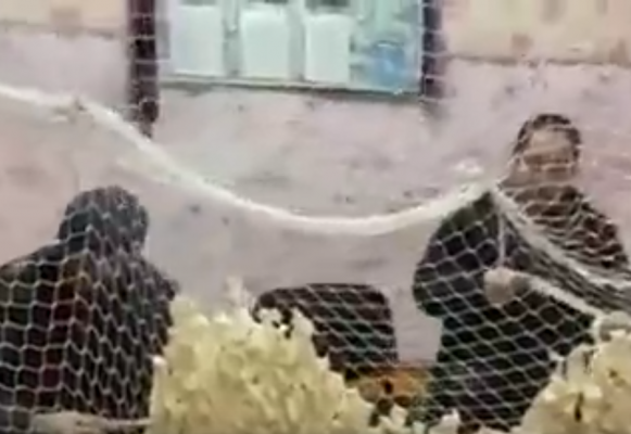 Сетку и ткань приносят сами волонтёры, а работают они в сельском клубе, напевая военные песни. Сетку, которая на видео, плели под «Катюшу».