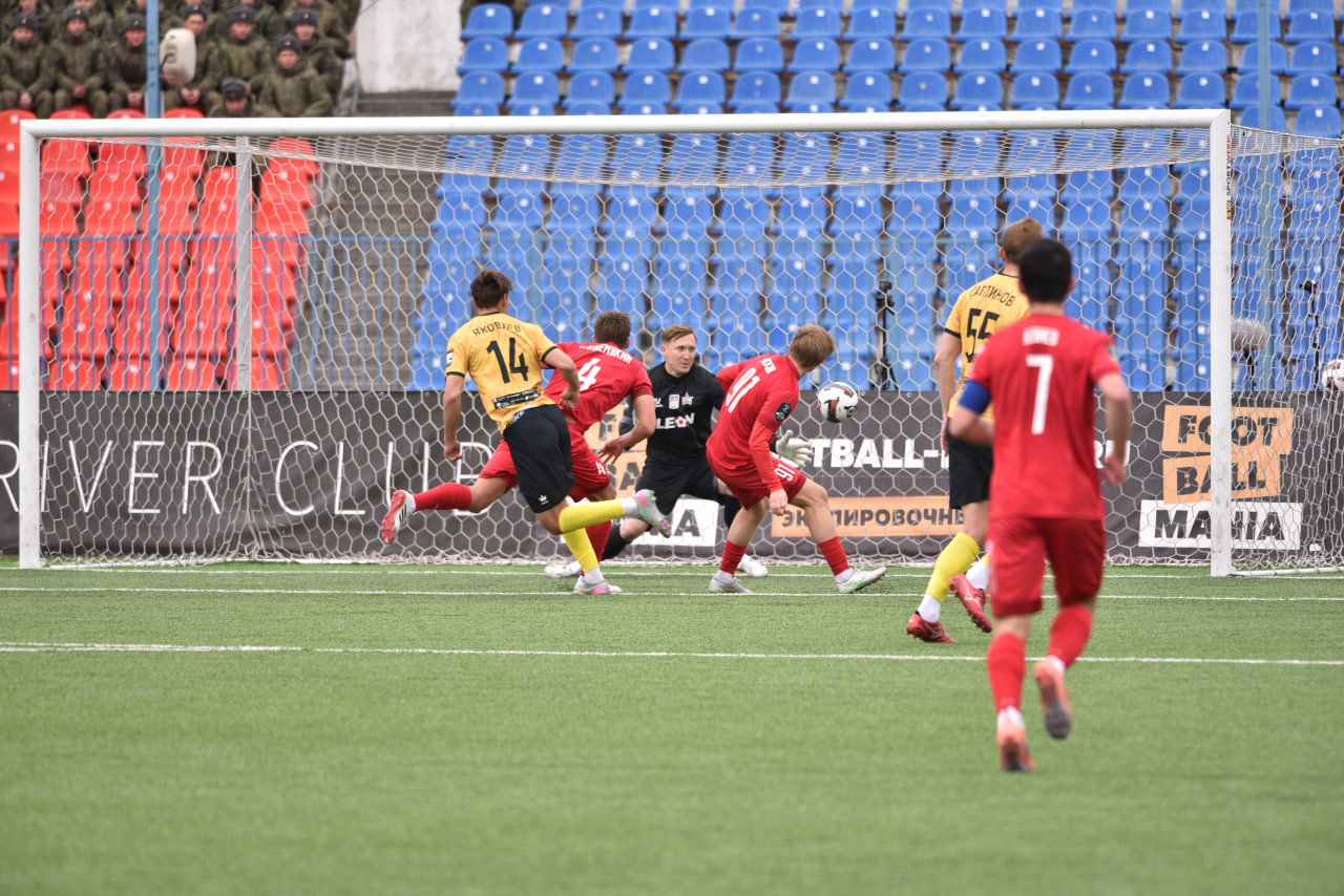 Подобные голы порой называют британскими, или шотландскими. К сожалению, незадолго до перерыва «жёлто-чёрные» и пропустили точно такой гол от 20-летнего хабаровчанина Степана Глотова. Ассистировал же ему поигравший в своё время за волжан Егор Носков.