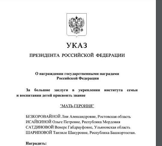 Жительнице Ульяновска Венере Сатдиновой присвоено почетное звание «Мать-героиня». Соответствующий Указ подписал Президент РФ Владимир Путин, сообщает губернатор Алексей Русских.
