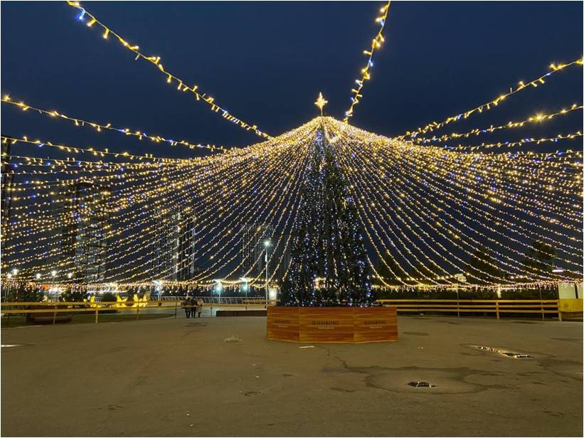 Празднично оформленные ели установлены у зданий компаний «Бизнес Инвест», «Вираж», «Мегастрой», «Вертикаль», «Альянс» на Рябикова, «Звезда», «Лента», «Перекрёсток» на Жигулёвской и MN Group.