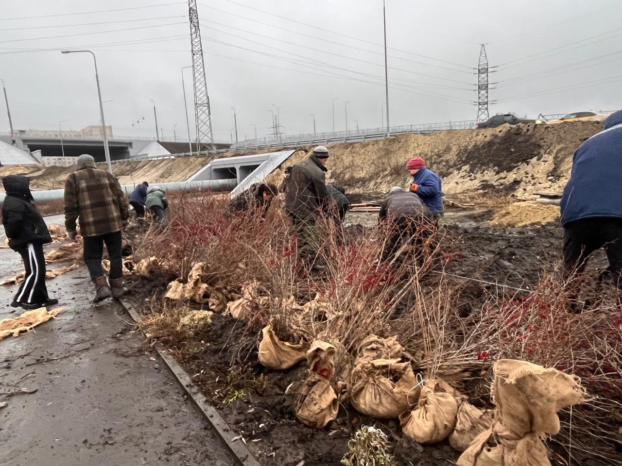Напомним, ранее они высадили вблизи переправы почти тысячу краснолистных кустарников и 22 шаровидные ивы.