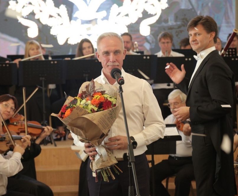 Сам юбиляр тоже в белом. Морозов смущенно прошел через живой коридор людей под громкие овации, туш и звуки фанфар. На импровизированной сцене на фоне герба Ульяновской области разместились музыканты из симфонического оркестра под руководством дирижера Ильи Дербилова, которые тоже приветствовали губернатора стоя. Главной тамадой поздравительного события, конечно же, была очаровательная Диана Ковела. Хорошо, когда в аппарате есть свой профессиональный ведущий!
