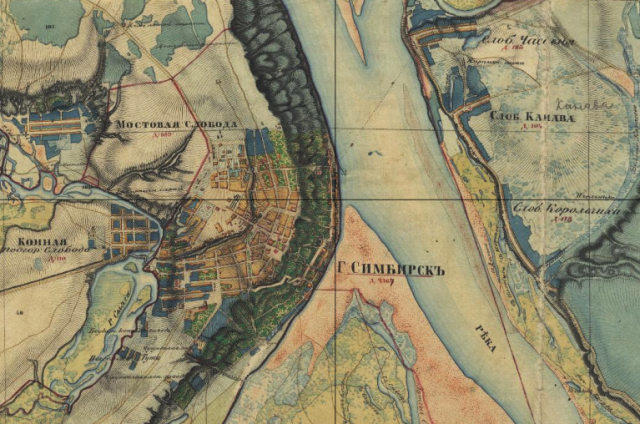Симбирск на карте Менде, 1859 год