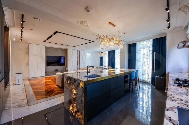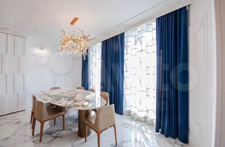 Общая площадь 5-комнатных «хором» достигает 270 квадратных метров. Квартира расположена в элитном доме на улице Мира. На такие деньги можно купить целый коттедж с не менее шикарным ремонтом.
