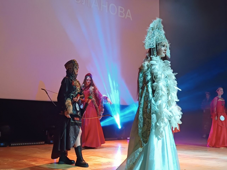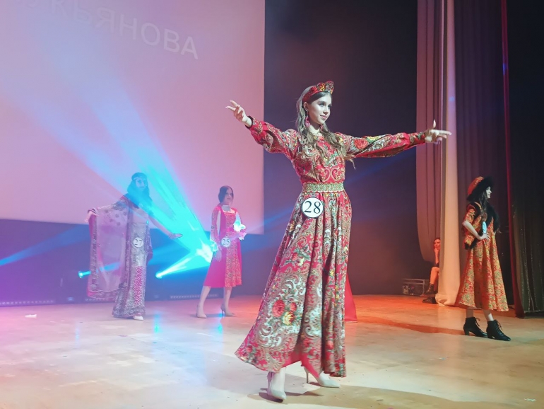 Особый колорит конкурсу добавил выход в национальных костюмах. Алёнушка, сударыня, боярыня, русская красавица, якуточка и даже охотница с луком и стрелами. Изюминкой стала Ульянушка - в расписанном достопримечательностями Ульяновска платье. Дополнял креативный образ кокошник с изображением Мемецентра и надписью «Ленин».