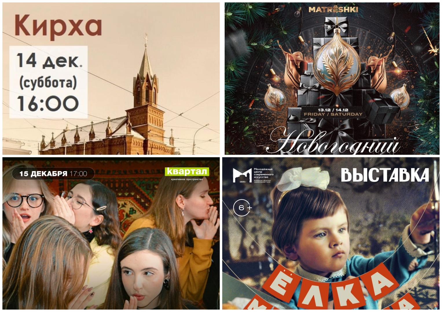15 декабря в 18.00 в МЦСИ (ул. Ленина, 83) состоится открытие выставки винтажных ёлок под общим наименованием «Малютка». В экспозиции представлены советские мини-елочки с наборами миниатюрных игрушек московской фабрики № 2 Бауманского райпромтреста. Экспонаты из частной коллекции датируются 50-80-ми годами прошлого века. Наборы ёлочных украшений «Малютка» производились на советских игрушечных фабриках не как сувениры, а в первую очередь как игрушки для детей. Наряжая кукольную ёлочку крошечными шариками, шишками, овощами, медвежатами и космонавтами, советские дети создавали для себя атмосферу большого праздника, волшебства и счастья. Вход свободный.
