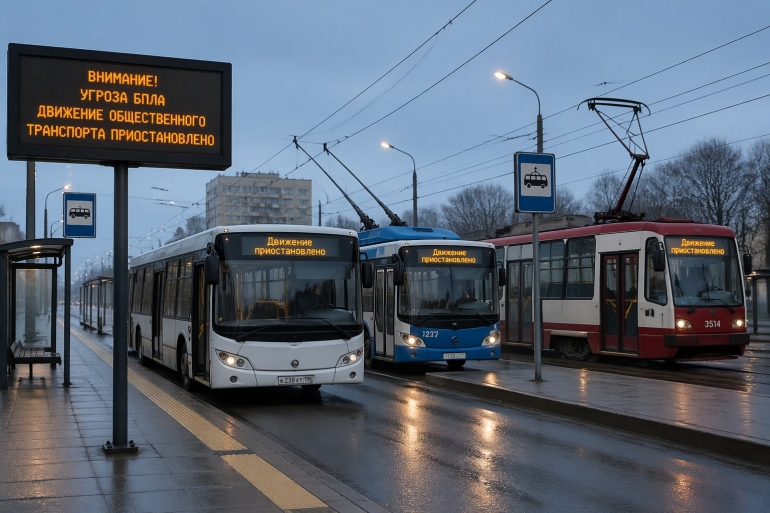 Работа общественного транспорта действительно оказалась парализована на несколько часов из-за объявленной угрозы БПЛА — автобусы, троллейбусы и трамваи высадили пассажиров и остались пустовать на остановках. Работу метро приостанавливать не стали, за исключением наземной станции Юнгородок.