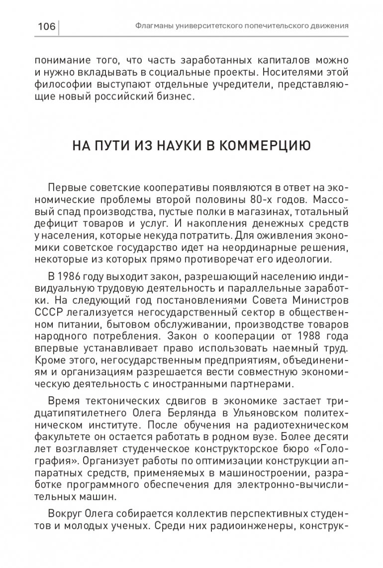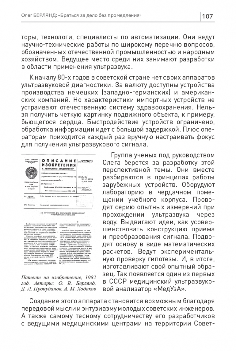 Время тектонических сдвигов в экономике застает тридцатипятилетнего Олега Берлянда в Ульяновском политехническом институте. После обучения на радиотехническом факультете он остается работать в родном вузе. Более десяти лет возглавляет студенческое конструкторское бюро «Голография». Организует работы по оптимизации конструкции аппаратных средств, применяемых в машиностроении, разработке программного обеспечения для электронно-вычислительных машин. Вокруг Олега собирается коллектив перспективных студентов и молодых ученых. Среди них радиоинженеры, конструкторы, технологи, специалисты по автоматизации. Они ведут научно-технические работы по широкому перечню вопросов, обозначенных отечественной промышленностью и народным хозяйством. Ведущее место среди них занимают разработки в области применения ультразвука.