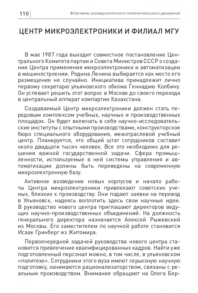 Активное возведение новых корпусов и начало работы Центра микроэлектроники привлекают советских ученых, близких к производству. Они подают заявки на перевод в Ульяновск, надеясь воплотить здесь свои научные идеи. В руководство нового центра приглашают директоров ведущих научно-производственных объединений. На должность генерального директора назначается Алексей Рыжевский из Москвы. Его заместителем по научной работе становится Исаак Гринберг из Житомира.