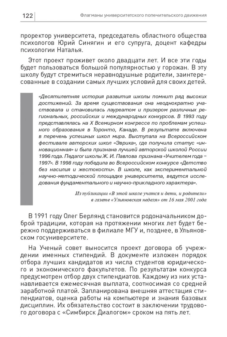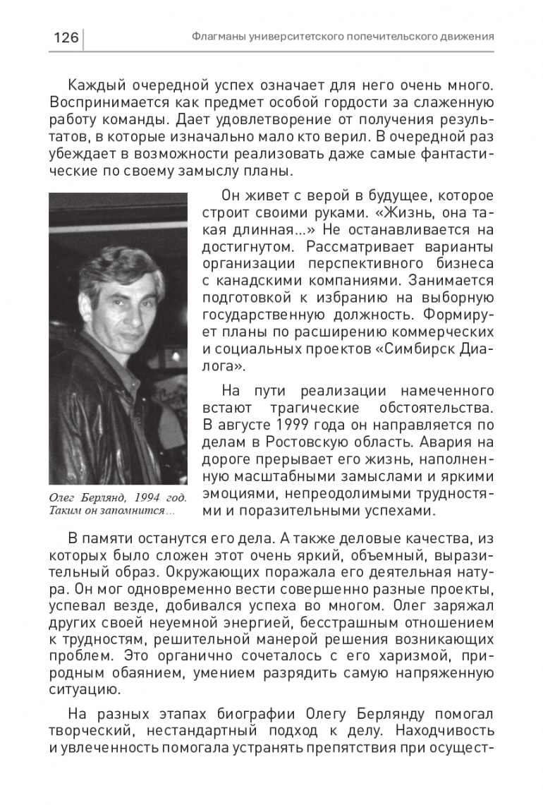УлГУ презентовал книгу «Флагманы университетского попечительского движения». Ее автор первый ректор, а ныне президент вуза Юрий Полянсков. Издание вышло ограниченным тиражом и, чтобы как можно больше людей могли прочитать книгу, эксклюзивно на 73online.ru будут опубликованы все главы первого тома. Сегодняшняя посвящена предпринимателю Олегу Берлянду — он возглавил группу по запуску попечительского движения, стал олицетворением мецената с четкими обязательствами и их последовательным выполнением.