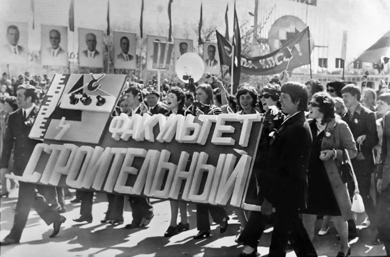 Первомайская колонна политехнического института как символ подъема строительной сферы, 1973 год