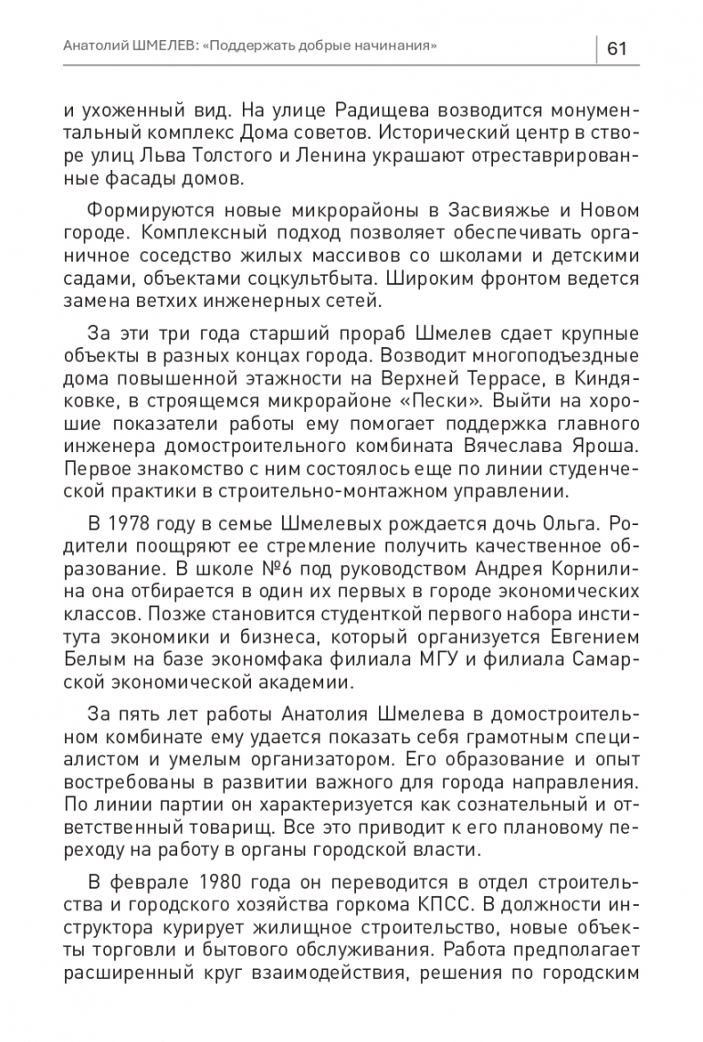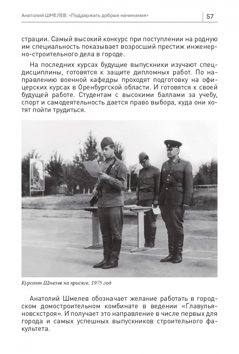 Анатолий Шмелев обозначает желание работать в городском домостроительном комбинате в ведении «Главулья-новскстроя». И получает это направление в числе первых для города и самых успешных выпускников строительного факультета.