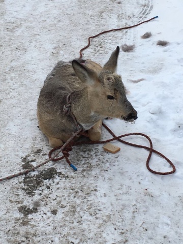 Косуля была обессилена, но жива. Круп животного прошел между прутьями, а вот филейная часть застряла. Прутья буквально врезались в тело косули.