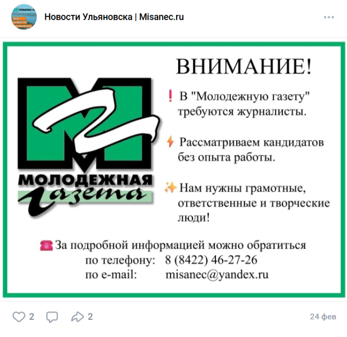 Собеседники 73online.ru отмечают, что главный редактор «Молодежной газеты» Захар Мисанец давно говорил, что закроет газету. Количество платных подписчиков ежегодно сокращалось, печатное издание проигрывало конкуренцию электронным СМИ. Аналогично накануне 35-летнего юбилея закрылась газета «Симбирский курьер».