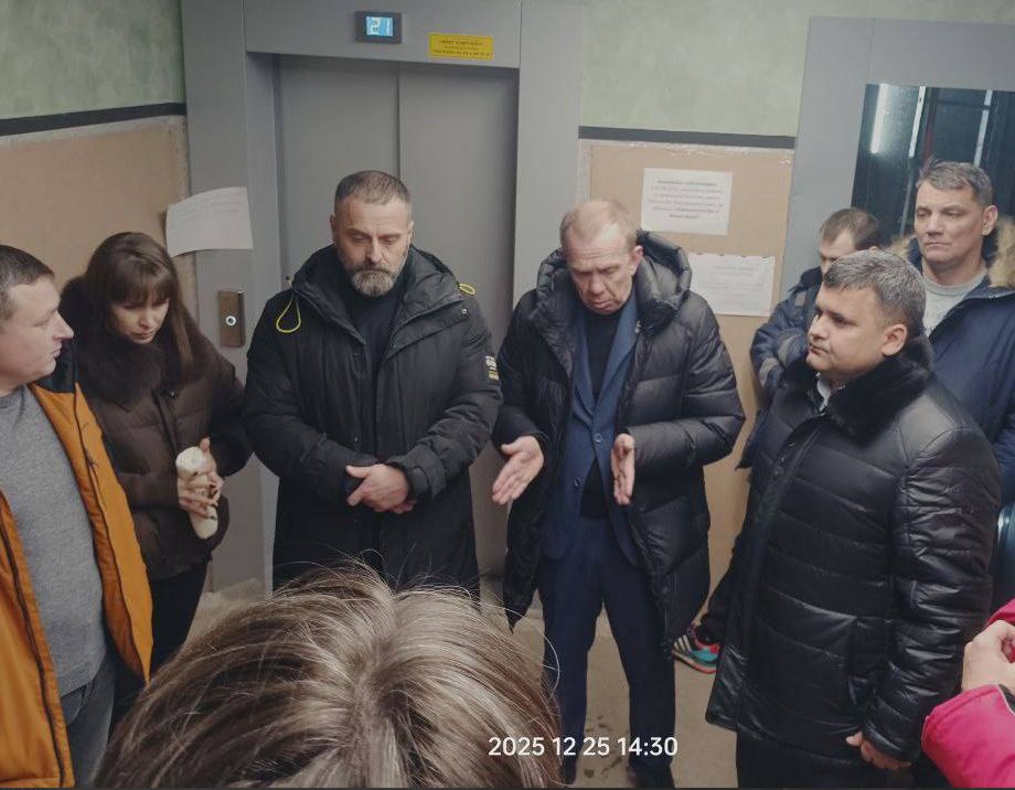 Сегодня, 25 декабря, в Ульяновске глава администрации Засвияжского района Ринат Садыков организовал выездное совещание с участием депутата УГД Максима Зацепин, представителей УК «Аметист» и застройщика, а также организации, занимающейся техническим обслуживанием лифтового оборудования.