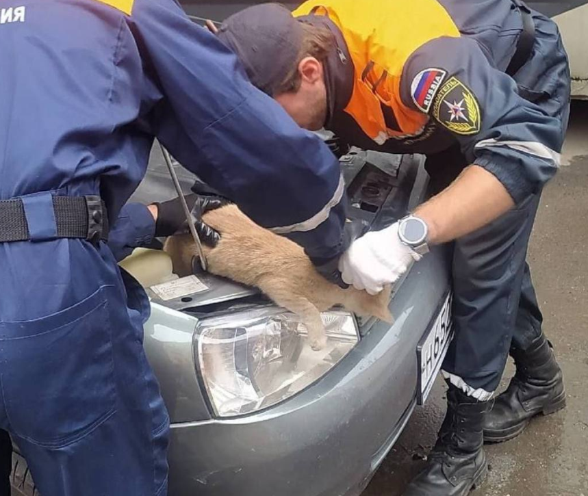 Инцидент произошел возле дома №12 по улице Пионерской. Автовладелец завёл машину и услышал под капотом странные звуки. Заглушив мотор, он пошел проверять двигатель и увидел, что под капотом кот.