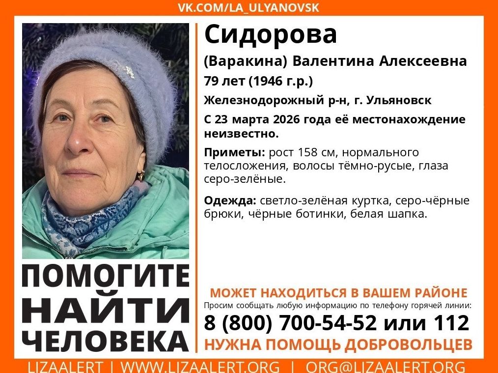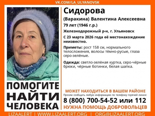 Вчера, 23 марта, в Железнодорожном районе Ульяновска пропала 79-летняя местная жительница Валентина Сидорова (Варакина).