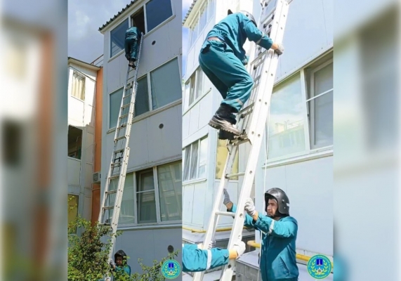 Прибывшие на место спасатели в присутствии родственников при помощи трехколенной лестницы проникли в квартиру через окно третьего этажа.