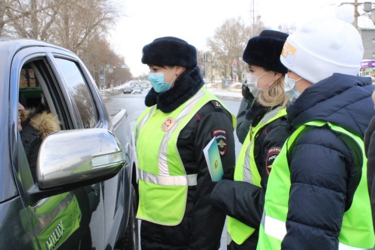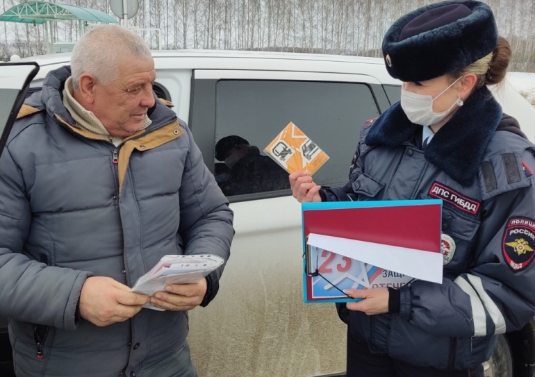В канун праздничного дня сотрудницы Госавтоинспекции совместно со специалистами Дирекции безопасности дорожного движения поздравили водителей с наступающим праздником - Днем защитника Отечества.